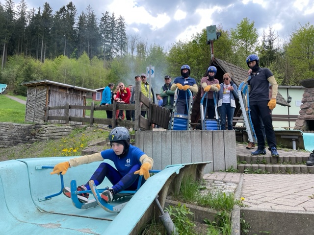 Vom Kickelhahn aus ging die Wanderung weiter über den Lindenberg zur Rennschlittenbahn. Hier wurde der „1. Rotarische Rodelpokal“ ausgetragen. Der Rodelclub Ilmenau bedankte sich beim RC Ilmenau für die kontinuierliche Unterstützung und bekam auch in diesem Jahr bei dieser Gelegenheit einen Check von 1.400 € überreicht. Ute Oberhofer resümiert: „Eine solche Aktion wie dieser Wandertag schweißt über Clubgrenzen hinweg zusammen. Wir waren immer in Bewegung. Wir haben den gleichen Weg zurücklegt. Wir haben miteinander gegessen, geredet und zugehört. Es war ein unvergessliches Erlebnis.“