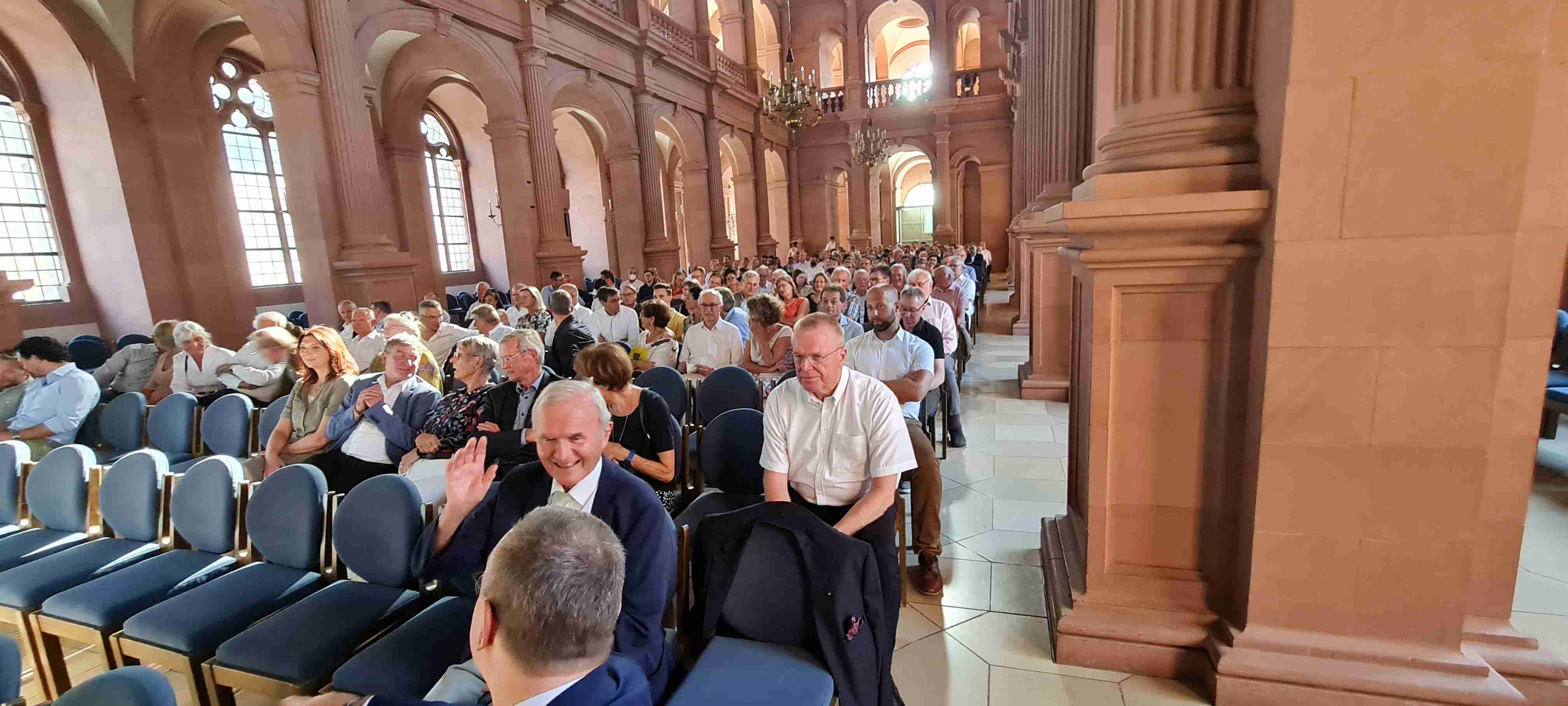 Zu dem Festvortrag anläßlich des 50-jährigen Clubjubiläums des Rotary Clubs Würzburg-Stein fanden sich neben zahlreichen Freundinnen und Freunden des Clubs auch viele Freundinnen und Freunde aus den umliegenden Partnerclubs ein. Hinzu kamen viele externe Gäste, sodass um 18 Uhr das Foyer der Neubaukirche Würzburg gut gefüllt war. Nach einem Glas Sekt ging es von dort in den eindrucksvollen Festsaal der Universität, der mit circa 250 Besuchern wohl seit der Corona-Zeit nicht mehr eine so große Versammlung beherbergte.