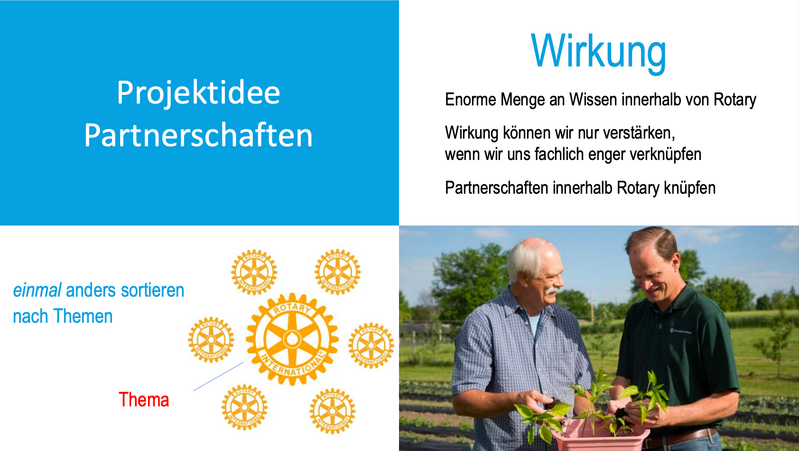 Ich glaube fest daran, dass innerhalb Rotary durch die Zusammenarbeit von Fachleuten und Interessierten auf diesen Gebieten bedeutende Fortschritte erzielt werden können.