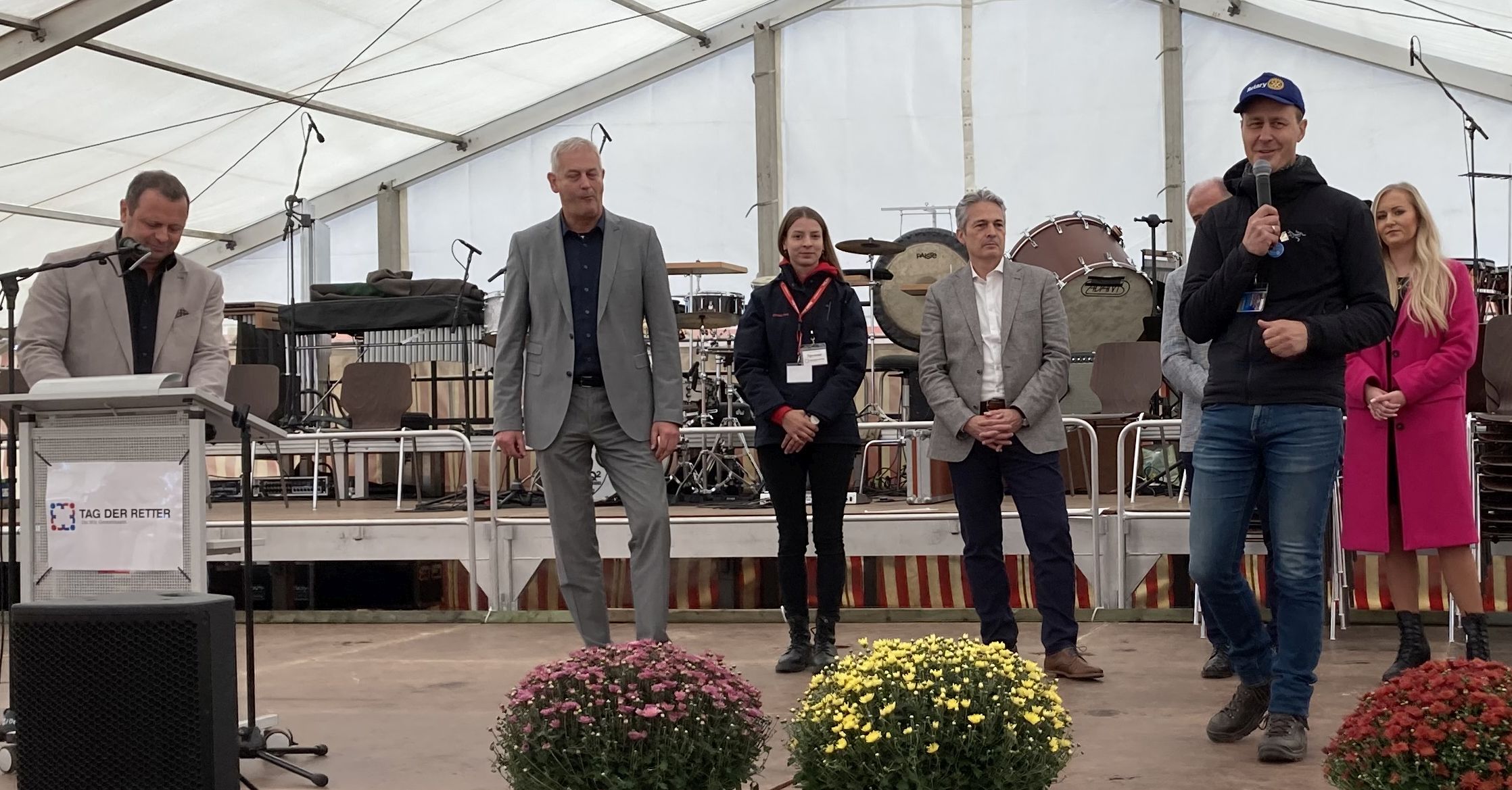 Präsident Andreas Völker betonte anlässlich der Eröffnung auf der Bühne, "dass der Rotary Club Schweinfurt-Peterstirn zudem schon seit Jahren gesundheitsrelevante Aktionen vor Ort fördert.“ Hierzu gehören etwa der Defibrillator an der Gutermann-Promenade, das Bayerische Rote Kreuz, die Deutsche Lebensrettungsgesellschaft, die Knochenmarktypisierung, die Klinik-Clowns, das Technische Hilfswerk und viele andere. Die Gelder stammen überwiegend aus den Erlösen des Rotarian Rowdy River Race. Dieses Schlauchbootrennen mit Familienfest am Mainufer wird auch 2025 wieder stattfinden. Völker lädt alle Zuschauer, Sponsoren und Teams schon jetzt herzlich dazu ein: