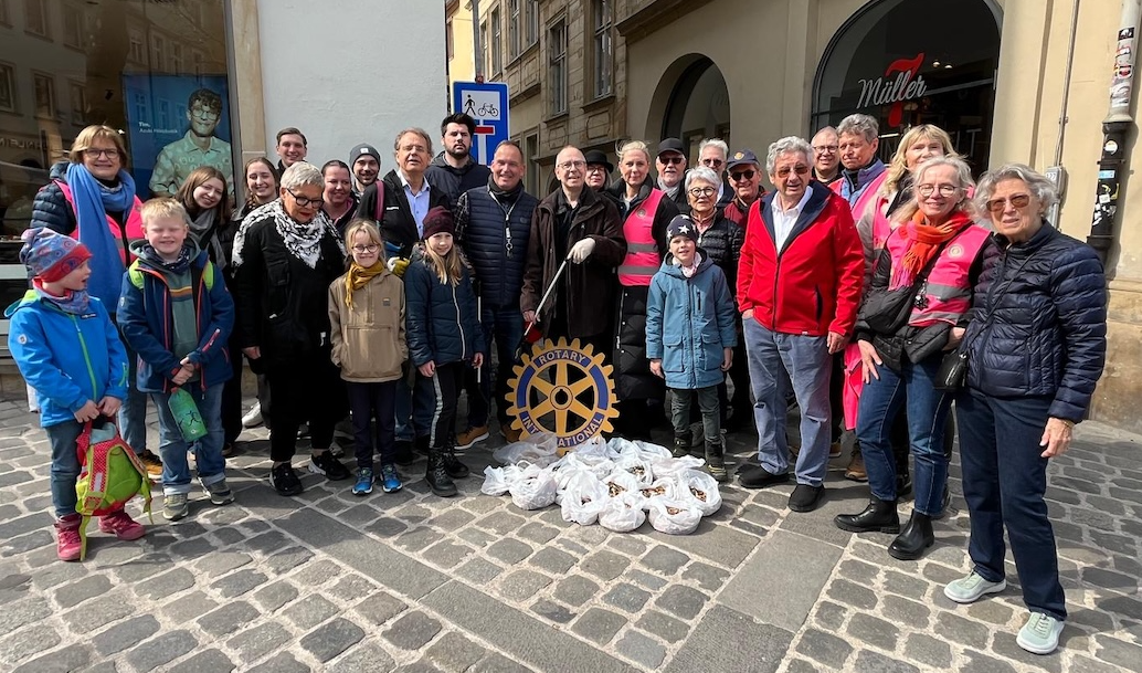Für den diesjährigen Rotary Action Day hatten die drei Bamberger Rotary Clubs eine eigene Idee: Alle drei Clubs sammelten heute gemeinsam mit dem Rotaract Club und dem Inner Wheel Club Bamberg in der Bamberger Innenstadt weggeworfene Zigarettenkippen, um auf das Problem aufmerksam zu machen, dass jede einzelne dieser Kippen eine enorme Umweltbelastung darstellt.