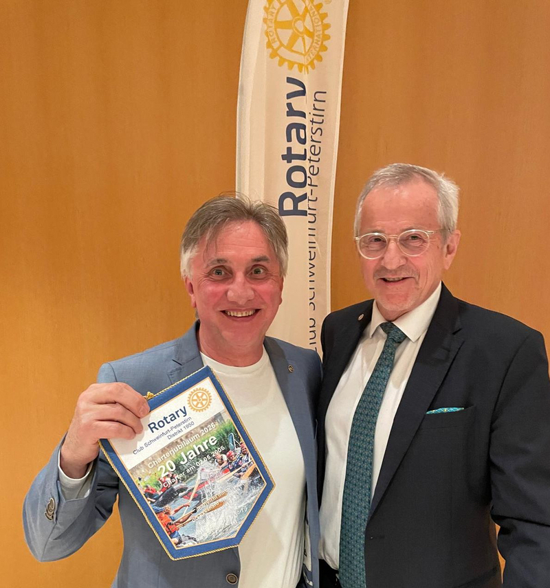Auch Ekkehard Schippers, der Governor des rotarischen Distrikts, freute sich, dass hier der rotarische Anspruch, “PeopleOfAction” zu sein, gelebt wird. Als Belege nannte er beispielhaft das Rotarian Rowdy River Raft Race und die Renovierung des Schindturms. Er wünschte dem Club weiterhin viel Freude an Rotary.