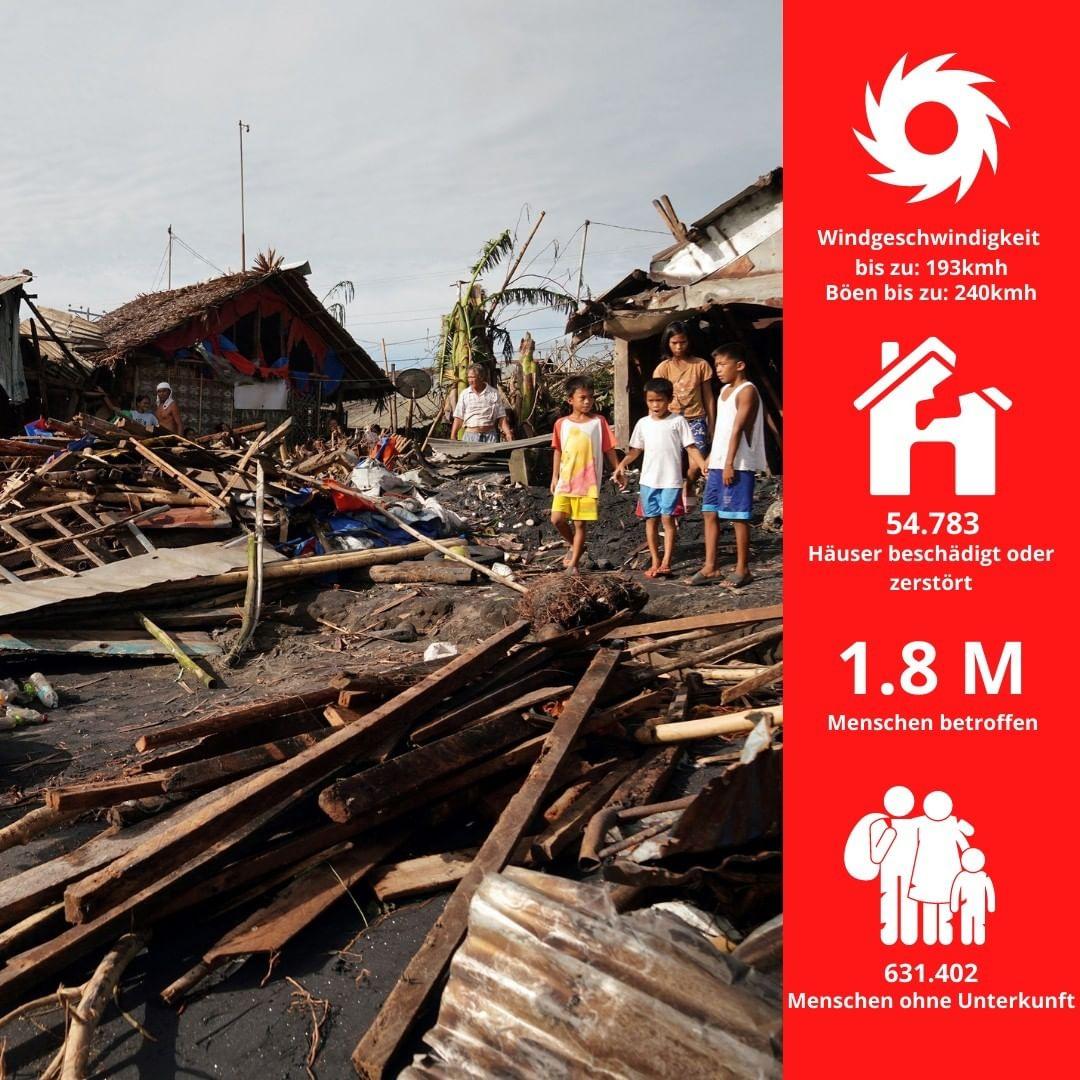 Wir sind äußerst besorgt über die Situation vor Ort. Weite Teile des Landes sind verwüstet, das Kommunikationsnetz ist zusammengebrochen, die Zahlen der Todesopfer und der Betroffenen steigen täglich weiter an. Mittlerweile mussten über 630.000 Menschen ihr Zuhause verlassen, 54.783 Häuser sind beschädigt oder komplett zerstört.