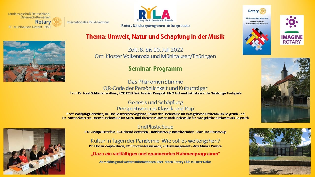 Dazu organisieren wir gleichzeitig ein RYLA-Seminar im Kloster Volkenroda. Ein interessantes Vortragsprogramm und Rahmenprogramm erwartet seine Gäste!