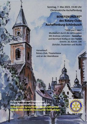 Am 7.5.2023 um 19.00 Uhr veranstaltet der Rotary-Club Aschaffenburg-Schönbusch zusammen mit und in der Christuskirche ein Benefizkonzert der besonderen Art mit dem Duo Appearuit.