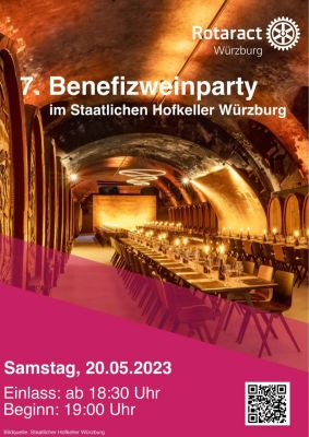 Der Rotaract Club Würzburg veranstaltet am 20.05.2023 um 19 Uhr die 7. Benefiz Weinparty im weltbekannten Hofkeller der Residenz Würzburg.