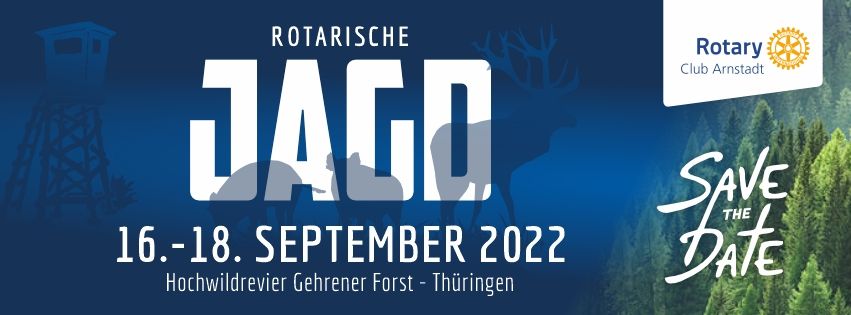 Der Rotary Club Arnsdtat lädt herzlich zur diesjährigen Rotarische Jagd vom 16. - 18. September 2022 ein.Die Details zur Veranstaltung finden Sie in der folgenden Programm PDF: