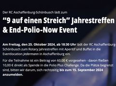 Am Freitag, den 25. Oktober 2024, ab 18:30 Uhr lädt der RC Aschaffenburg- Schönbusch zum Rotary Jahrestreffen mit Aperitif und Buffet in die Eventlocation Jedermann in...