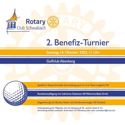 Der Rotary Club Schwabach lädt zum zweiten Mal zu seinemBenefiz Golfturnier am 14.10.2023 ein.