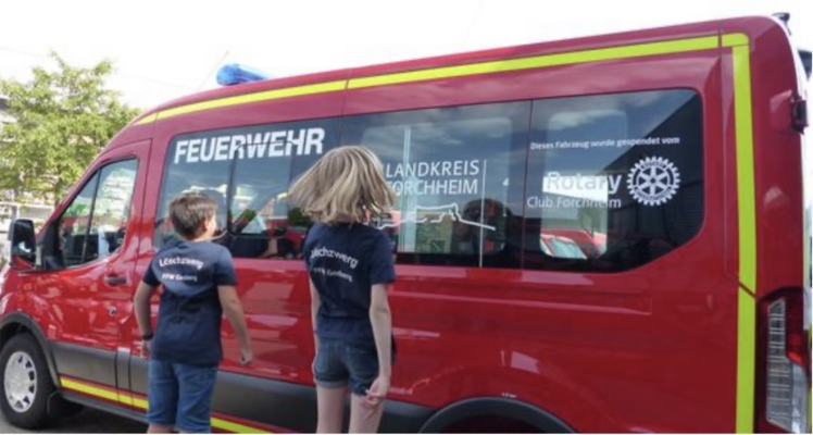 Ein roter Ford Transit mit Blaulicht auf dem Dach steht auf dem Gelände der Firma Compoint. Sein Wert beträgt 45.000 Euro und er wurde an die Kinder- und Jugendfeuerwehren im Landkreis Forchheim...
