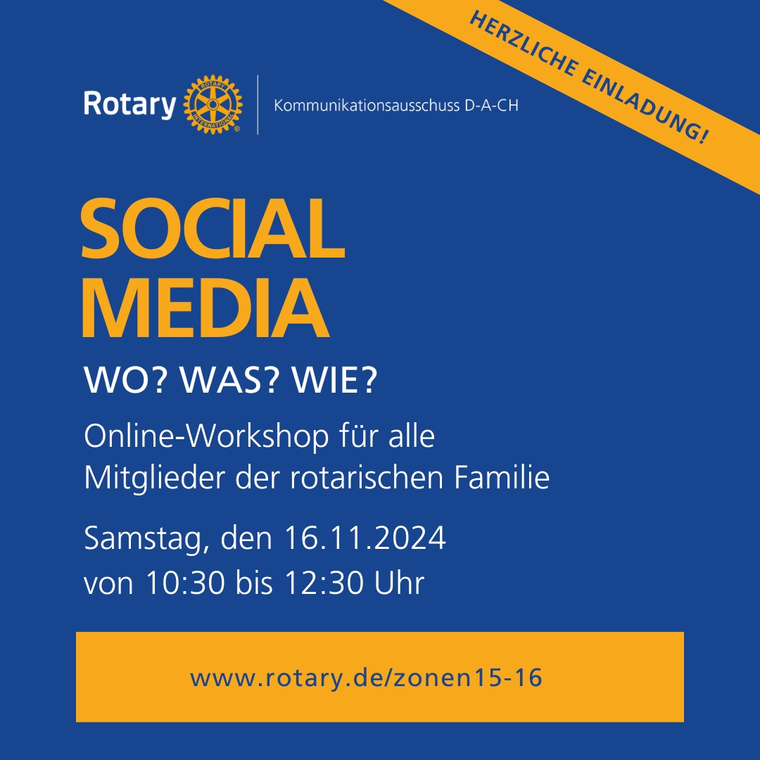 Social Media gezielt nutzen, das Image von Rotary verbessern und die richtigen Hashtags setzen – all das und mehr erwartet euch in unserem Online-Workshop am Samstag, 16.11.2024, von 10:30 bis 12:30 Uhr.